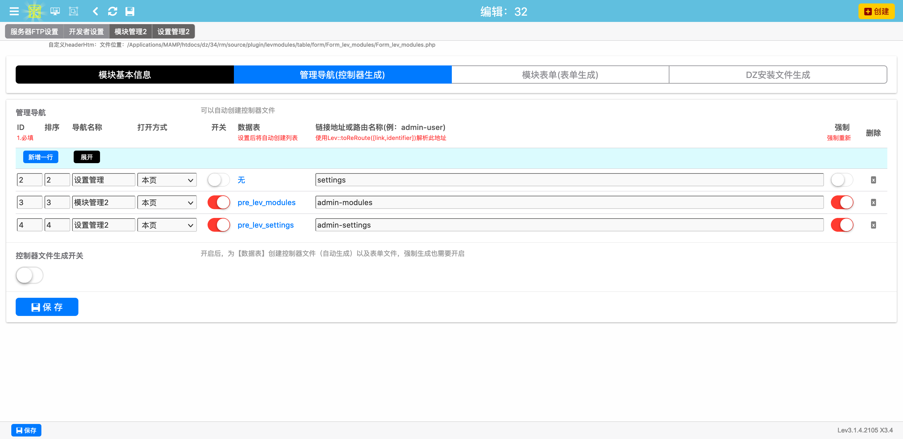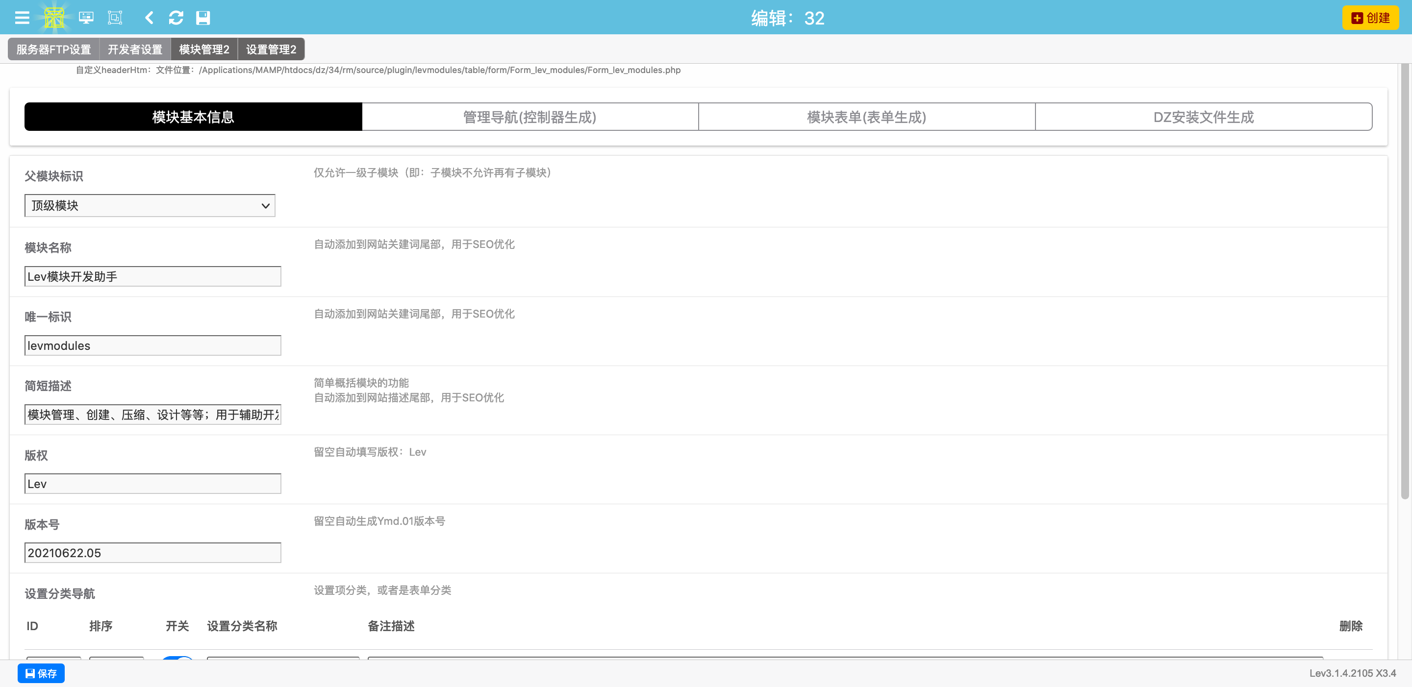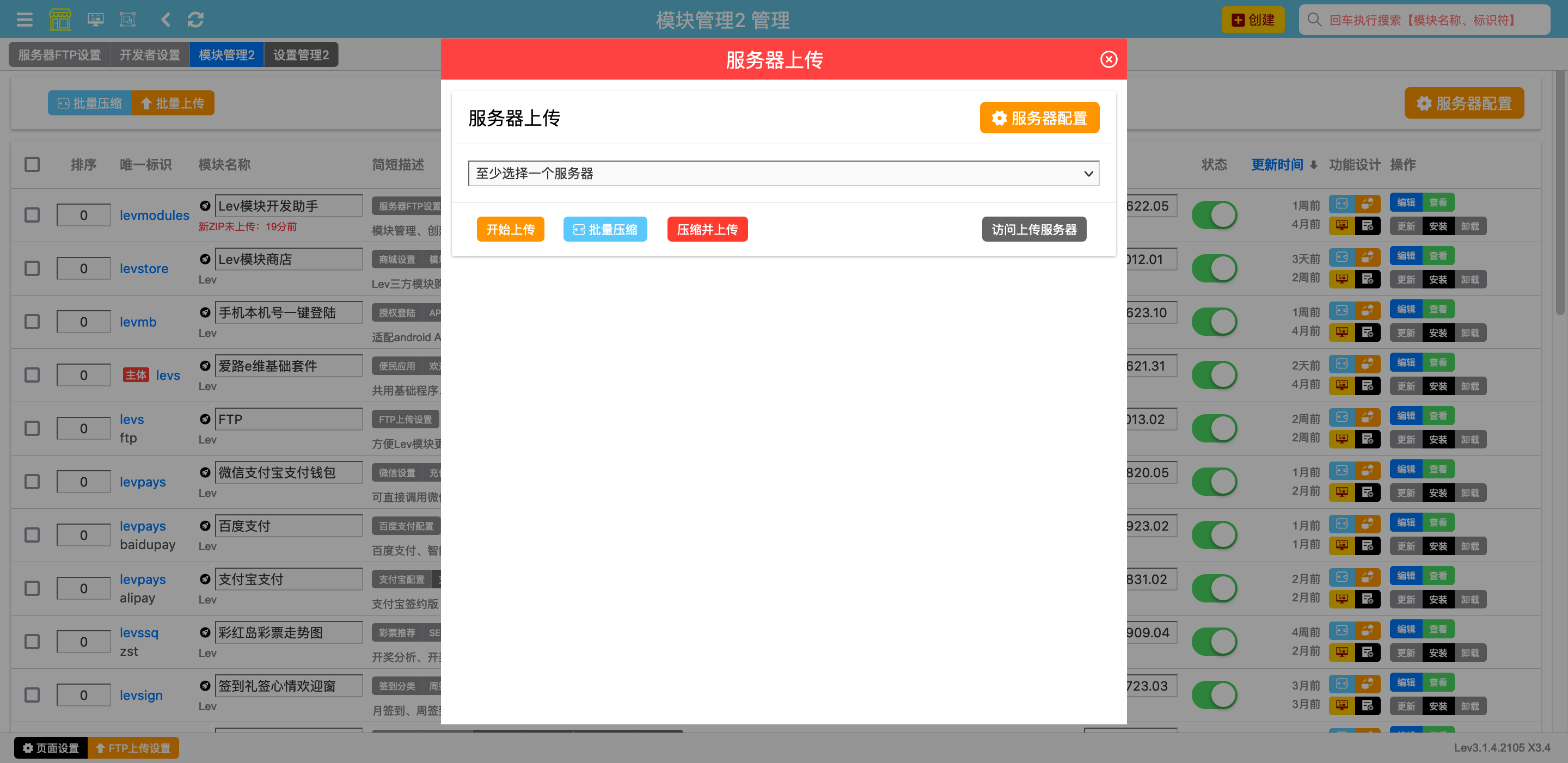 模块管理、创建、压缩、设计等等;用于辅助开发Lev模块,不建议线上使用